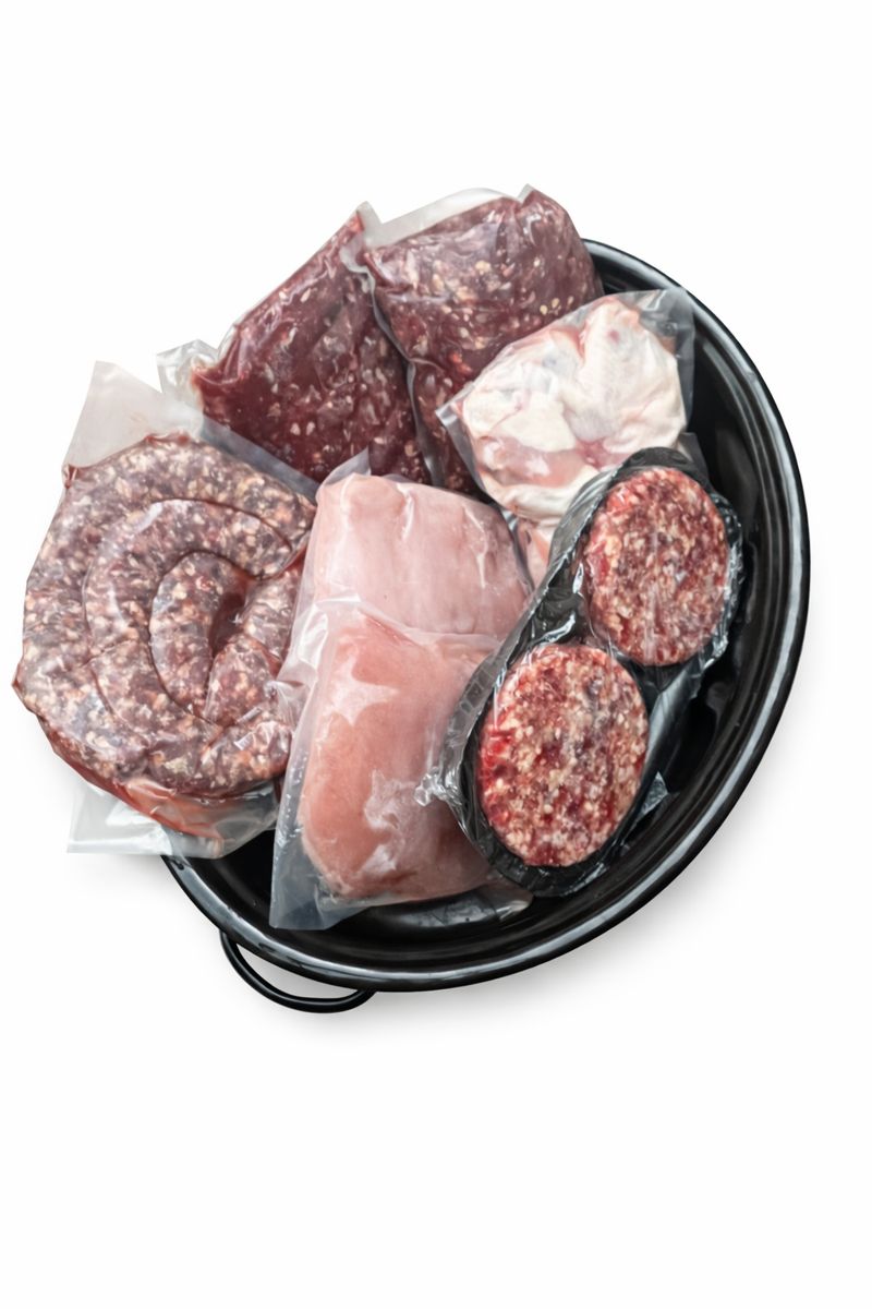 Beef Mince Meat: 2x500g Beef Wors: 1x500g Beef Patties: 1x500g Chicken Fillet: 2x500g Chicken Wing: